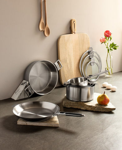 Les ustensiles de cuisine Master en inox 18/10 préservent les qualités gustatives des aliments. La poêle Master est disponible avec un revêtement anti-adhésif.